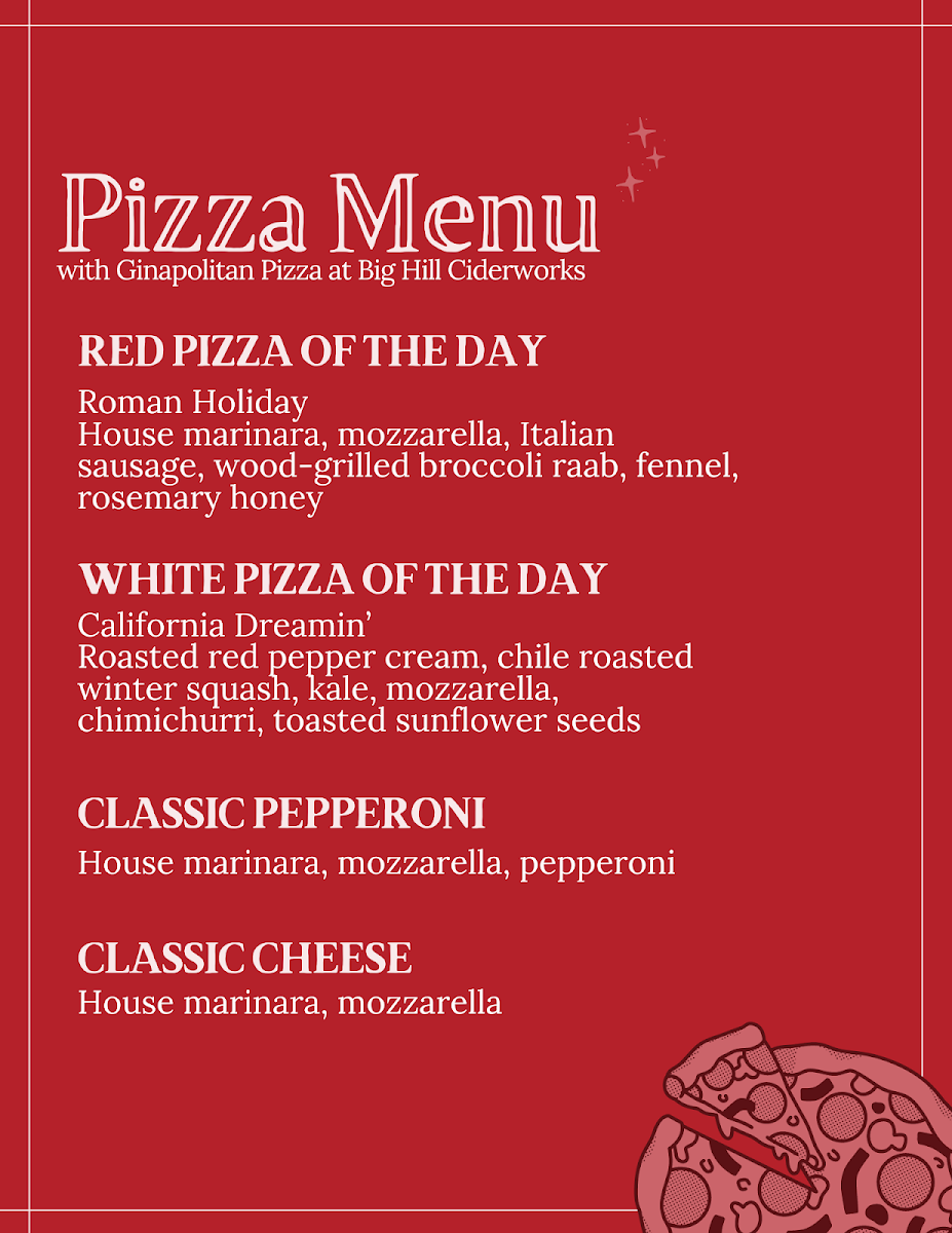 Pair your cider with mouthwatering fare from local food trucks, especially the highly praised Grappling Crab Shack. The vibrant atmosphere, highlighted by live music and stunning views of the surrounding mountains, creates a perfect setting for a relaxing outing. Guests like Jeffrey Wilson rave about the friendly service and well-maintained facility, while flavors become the true stars of the show. With ample outdoor space to enjoy and delicious options like wood-fired pizza, Big Hill is not just about cider—it's an experience you won’t want to miss!